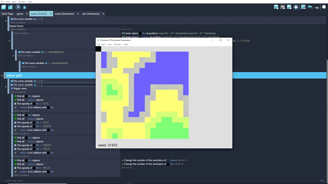- These variables will control the size of the grid on the x and y-axis. The event should look like this once complete: {{ :gdevelop5:tutorials:procedural-generation:step5.jpg?nolink |}}